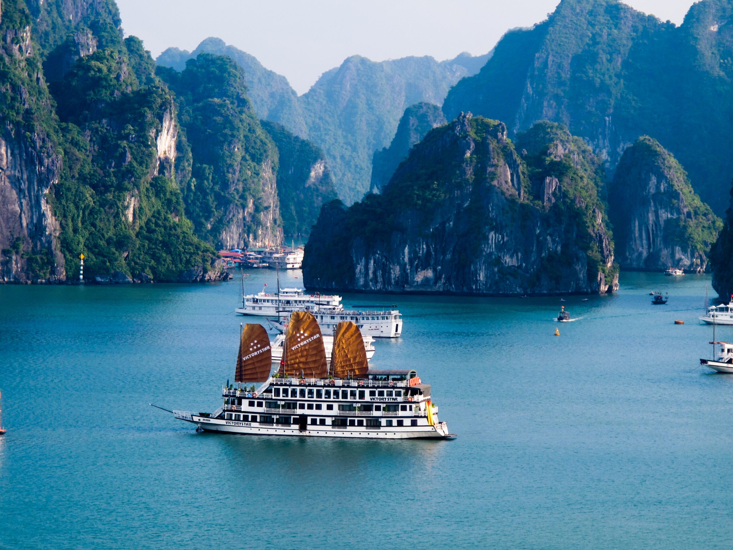 Depart Hanoi for a 2.5-hour drive to Halong Bay, a UNESCO Natural Heritage Site. Covering