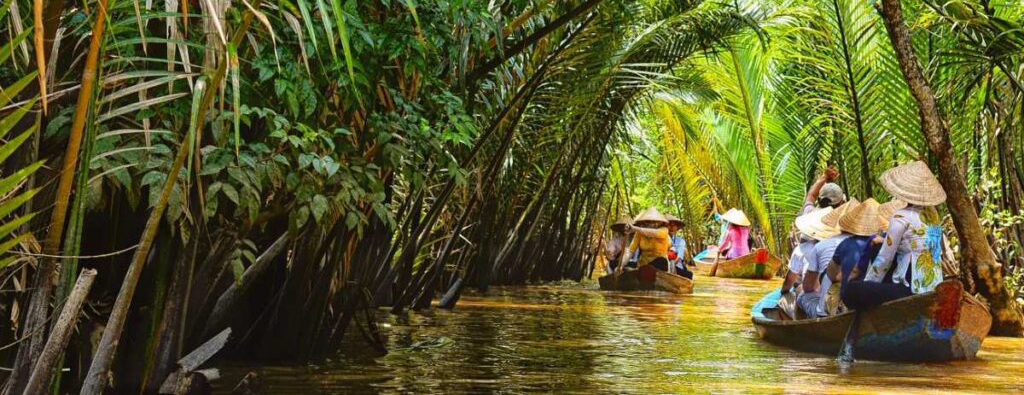 After breakfast, drive about 2 hours from Ho Chi Minh City to Ben Tre. Take a boat ride along the Mekong River, passing lush mangroves and local life in action—fishing, coconut transport, and more.