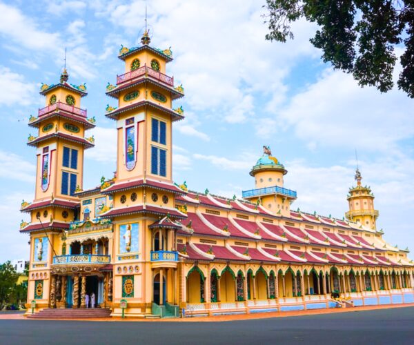 Take a 1.5-hour drive to Tay Ninh to visit the Cao Dai Great Temple, center of a unique Vietnamese religion blending Buddhism, Taoism, Confucianism, Christianity, and Islam.
