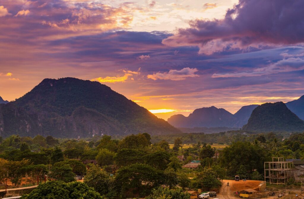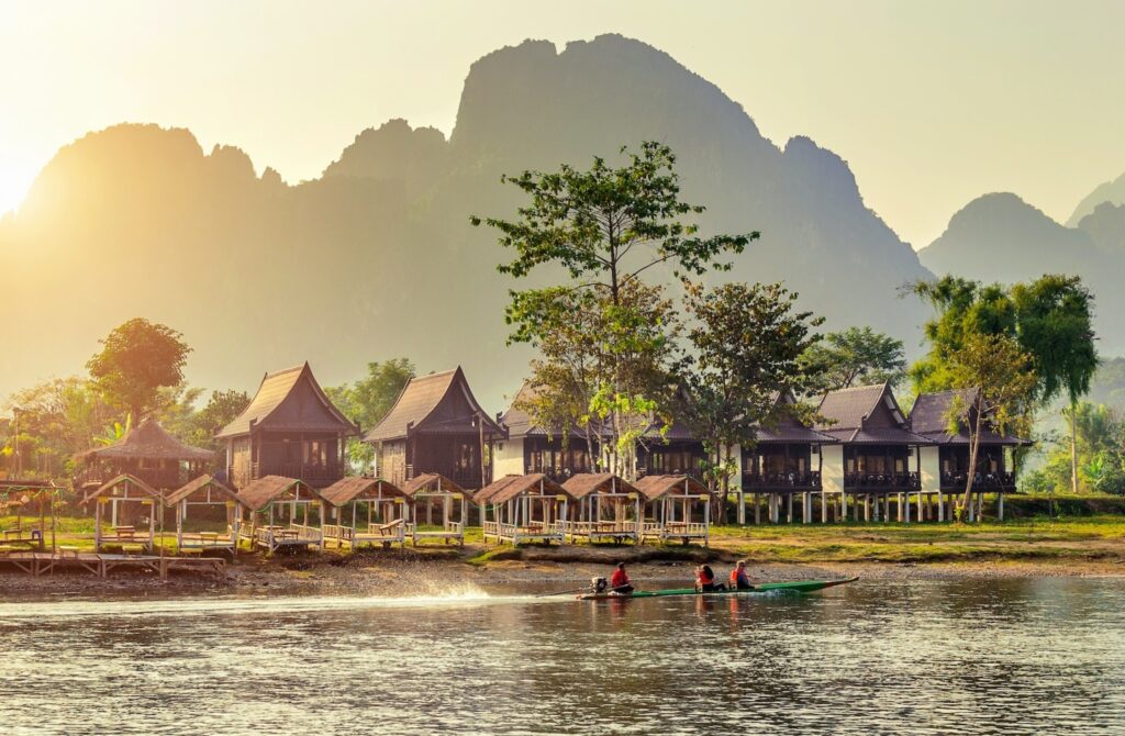 Take the morning, A scenic drive via the expressway to Vang Vieng (approx. 1.5 hours). Upon arrival, the scenery shifts from urban bustle to dramatic limestone karsts.