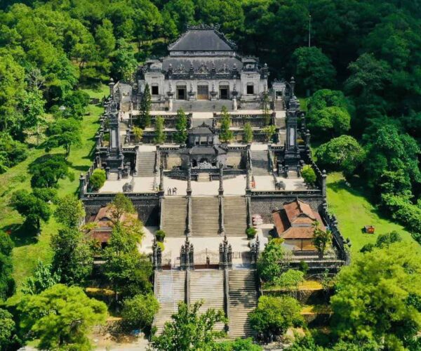 In the afternoon, continue to the elaborate Khai Dinh Royal Tomb, known for its unique blend of Eastern and Western architectural styles. While smaller than many other royal tombs, it stands out with flamboyant decorations, featuring the largest dragon sculptures in Vietnam flanking the stairways. The fusion of traditional Vietnamese design with modern European influences makes this tomb truly unique among Hue’s royal monuments.