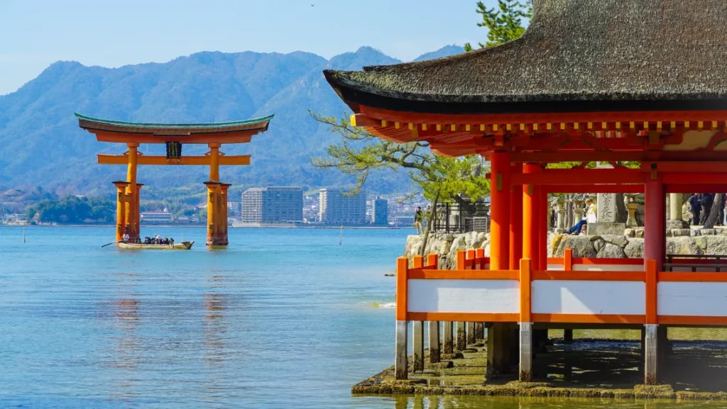 Take a ferry to Miyajima, the island of the gods. Upon arrival, visit the symbolic Otorii and Itsukushima Shrine, built in the Heian period (794-1192).